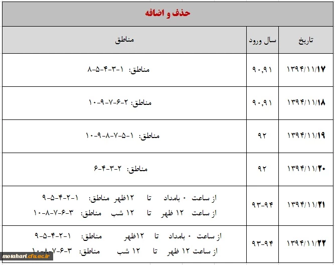 اطلاعیه برنامه زمانبدی حذف و اضافه 2