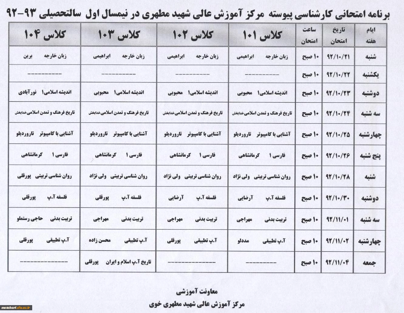 امتیاز دهید : اصلاحیه برنامه امتحانی کارشناسی پیوسته در نیمسال اول سال تحصیلی 93-92 یکشنبه 3 آذر 1392 ساعت 12:02