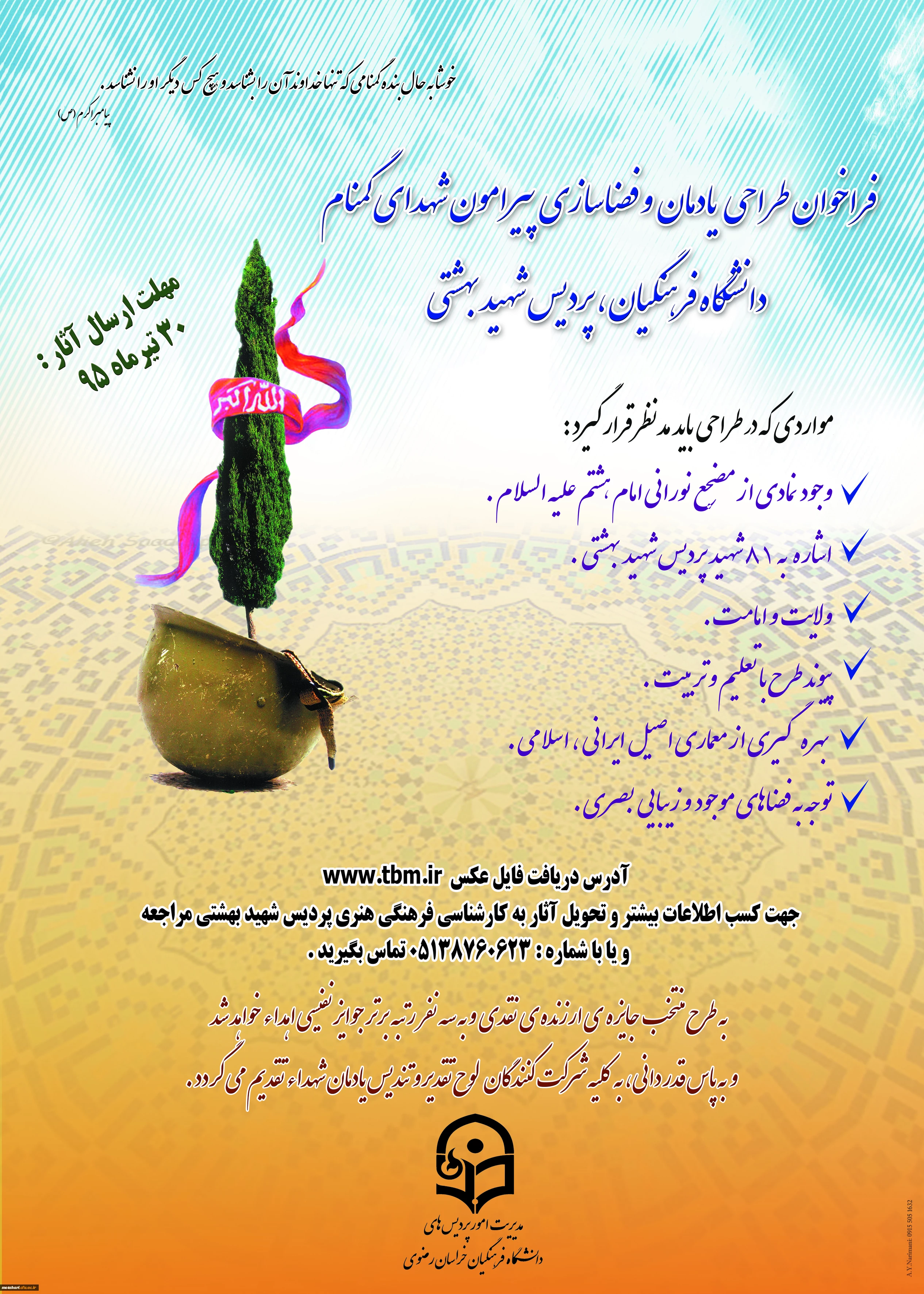 فراخوان طراحی یادمان و فضا سازی پیرامون شهدای گمنام دانشگاه فرهنگیان «پردیس شهید بهشتی » 2