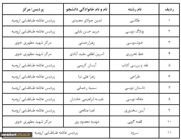 امتیاز دهید : اسامی نفرات راه یافته به مرحله کشوری بیست وششمین چشنواره علمی -ادبی وهنری 2 چهارشنبه 13 مرداد 1395 ساعت 11:37