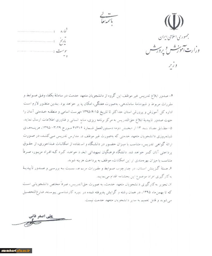 اطلاعـــــــیه نحوه شروع به کار دانشجومعلمان ورودی سال 1391 دانشگاه فرهنگیان در آموزش و پرورش 2