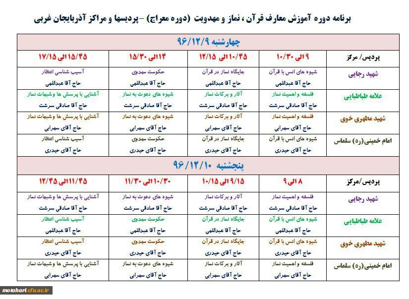 برنامه دوره نماز و مهدویت دانشجویان ورودی 93 پردیسها و مراکز آموزش عالی استان آذربایجان غربی 2