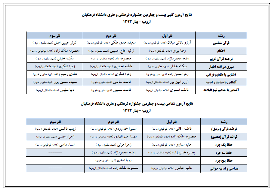 اسامی برندگان استانی مسابقه قرآن و عترت