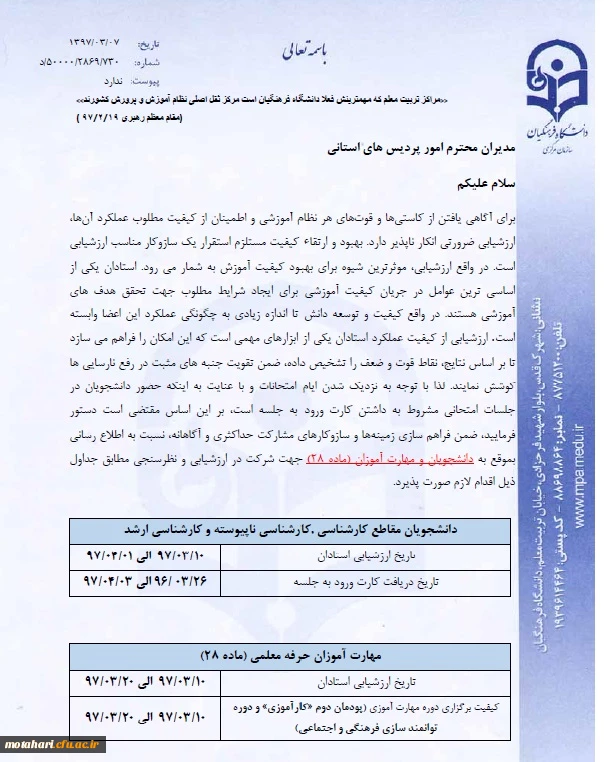 قابل توجه دانشجویان پیوسته، ناپیوسته و مهارت آموزان (ماده 28) 2