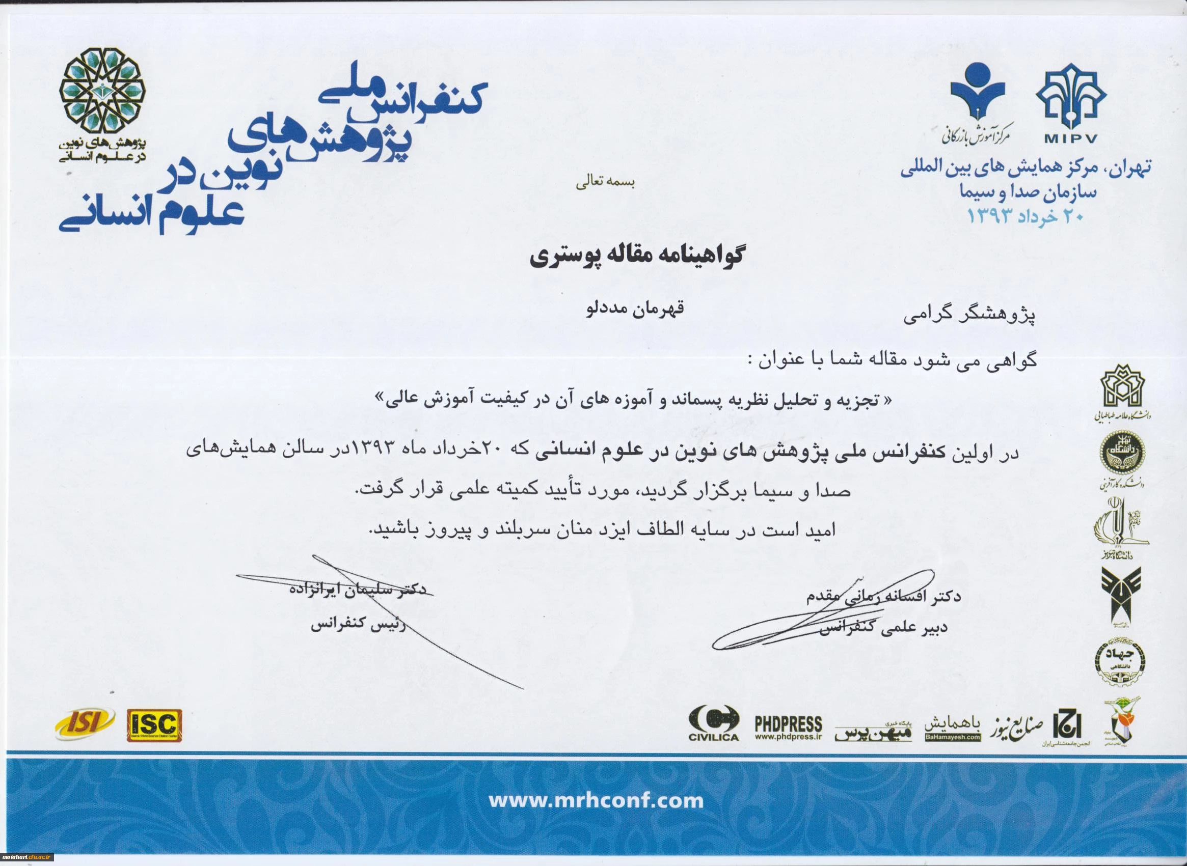 پذیرش مقاله معاون آموزش مرکزآموزش عالی شهید مطهری خوی 3