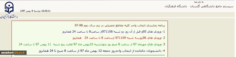 اطلاعیه انتخاب واحد ورودی های مهر 97 3