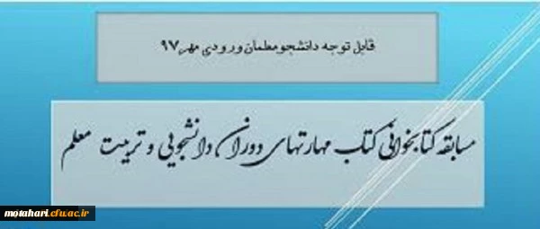 امتیاز دهید : برگزاری یک دوره مسابقه کتابخوانی از کتاب مهارتهای دوران دانشجویی و تربیت معلم 2 سهشنبه 16 بهمن 1397 ساعت 12:38
