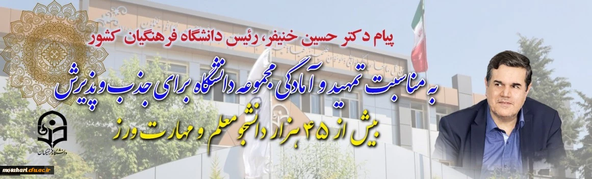 پیام دکتر خنیفر رییس دانشگاه فرهنگیان کشور به مناسبت تمهید و آمادگی مجموعه دانشگاه برای جذب و پذیرش بیش از ۴۵ هزار دانشجومعلم و مهارت آمورز 2
