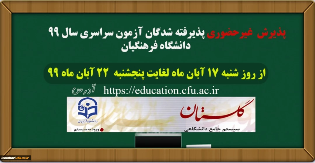 اطلاعیه زمان ثبت نام و پذیرش غیر حضوری پذیرفته شدگان کارشناسی پیوسته آزمون سراسری 1399 دانشگاه فرهنگیان 3