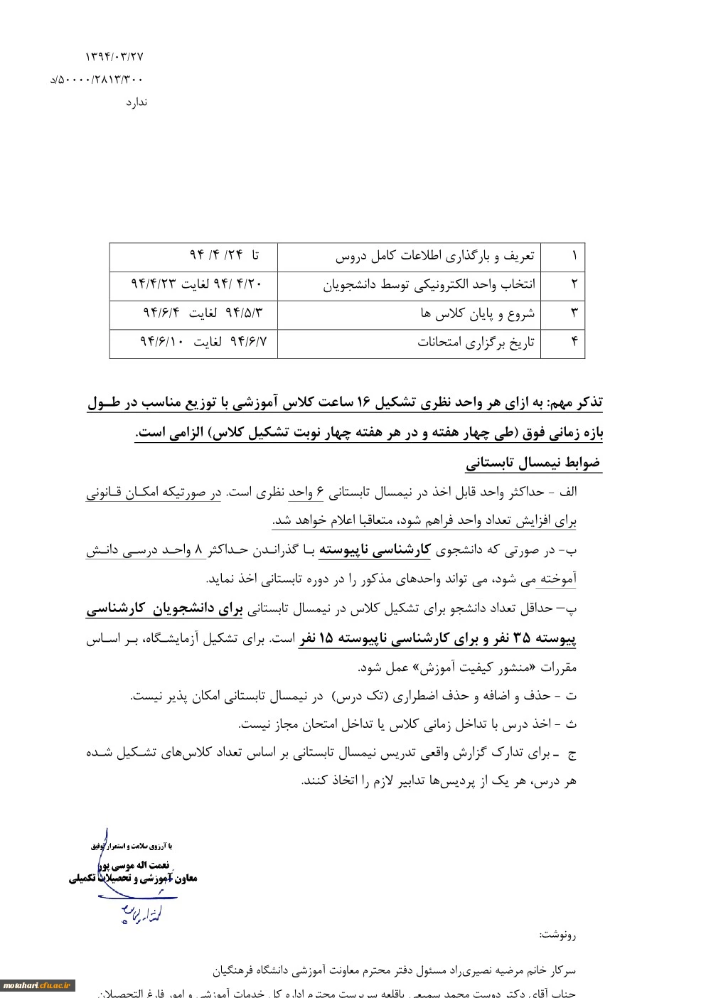 دستورالعمل ترم تابستان 2