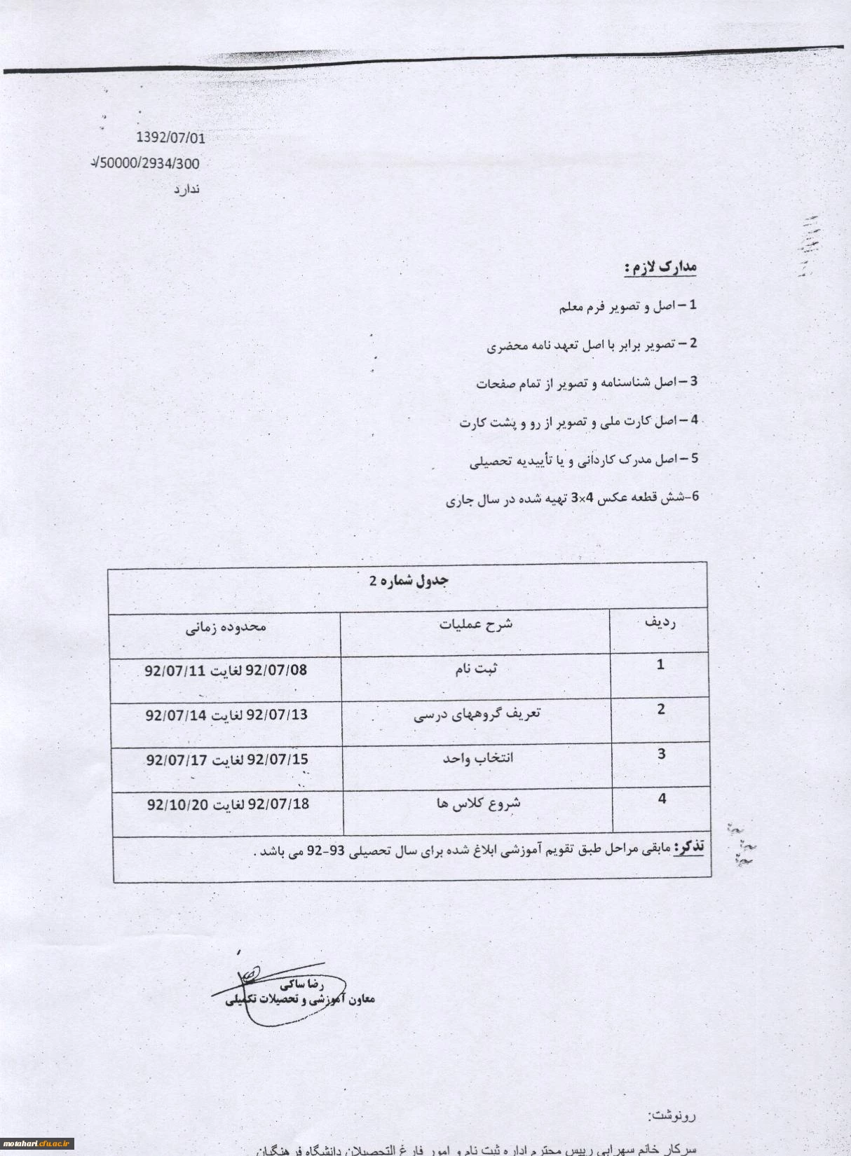 مدارک لازم جهت ثبت نام کارشناسی ناپیوسته 93-92