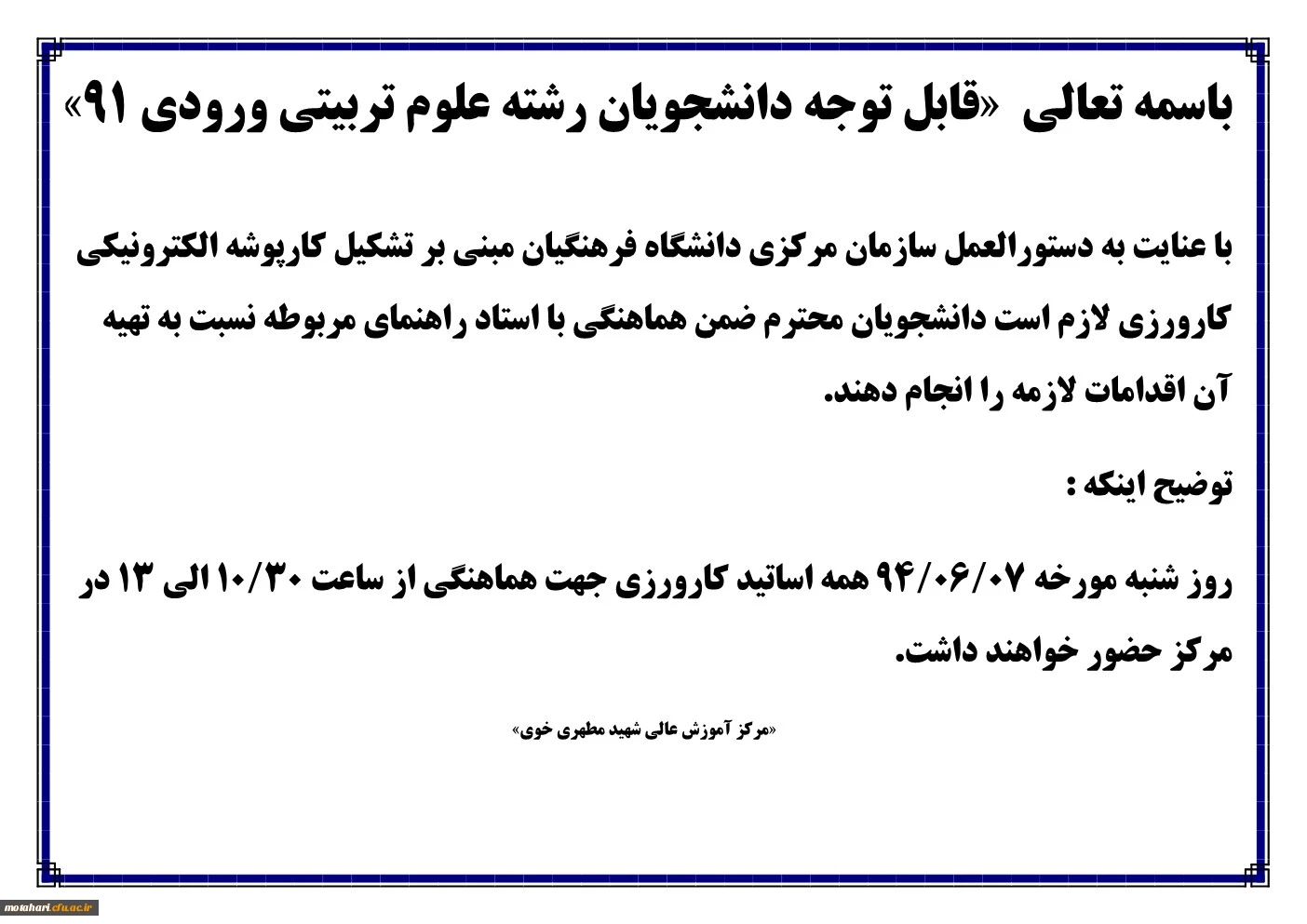 اطلاعیه قابل توجه دانشجویان رشته علوم تربیتی ورودی بهمن 91 2