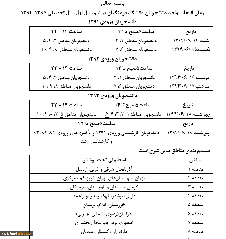 امتیاز دهید : زمانبندی انتخاب واحد در نیمسال اول سال تحصیلی 95 - 94 دانشگاه فرهنگیان 2 چهارشنبه 11 شهریور 1394 ساعت 19:35